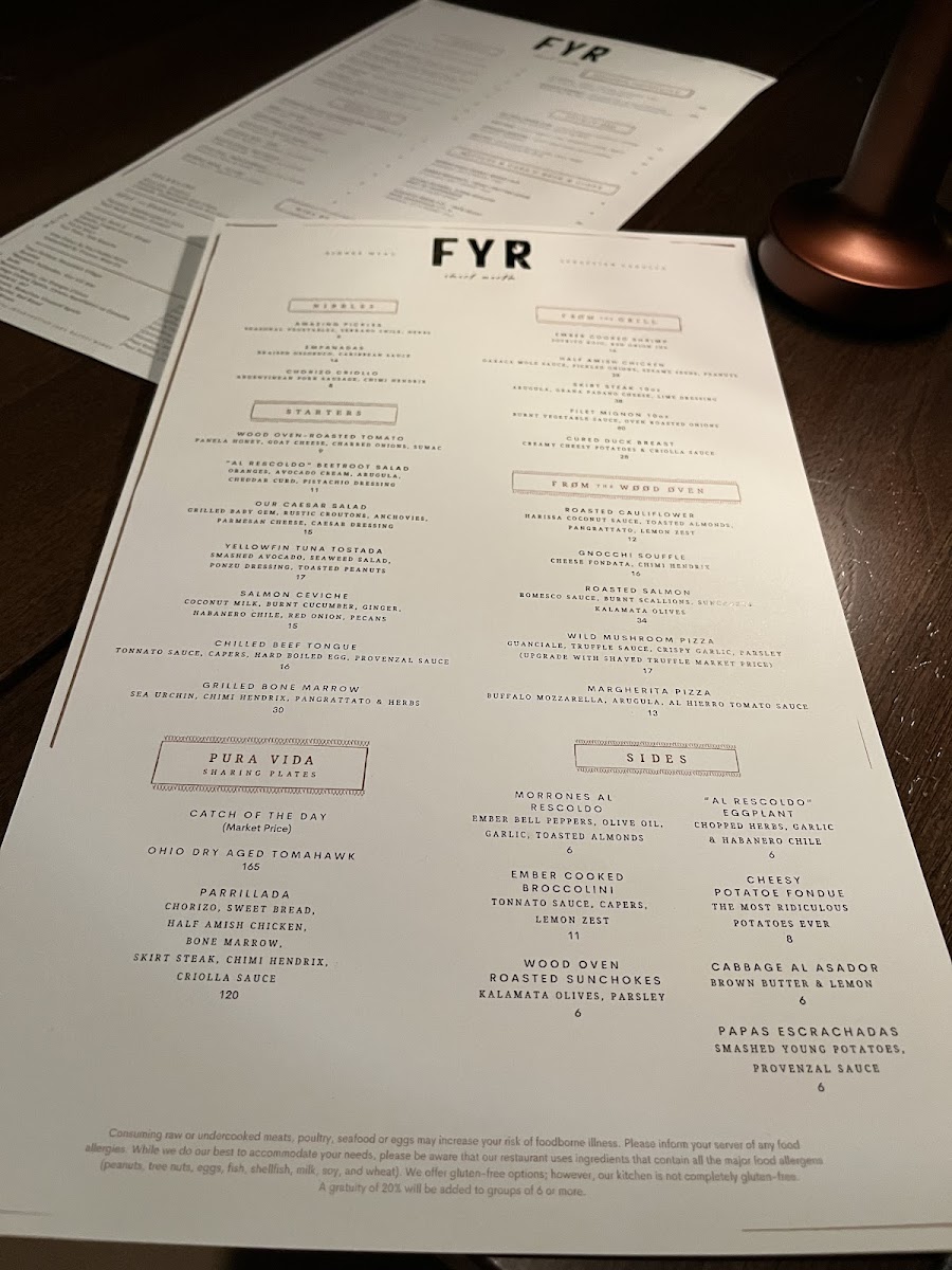 Introducing the Menu at FYR Short North